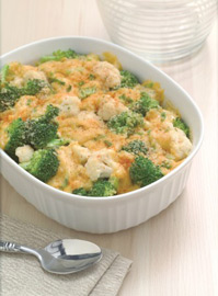 Kuhajte brokule u kipućoj vodi 5 minuta ili dok ne omekšaju. U manji lonac dodajte mlijeko, sol, biber i kukuruzni škrob pa kuhajte dok ne dobijete glatku smjesu. Umiješajte luk, cheddar sir i ostavite da pirja dok se sir ne rastopi. Dodajte brokule u dobiveni umak od sira pa prespite sve u podmazanu posudu za pečenje. Pospite sa parmezanom, poklopite i pecite 30 minuta na temperaturi od 170 stepeni. Izvadite i poslužite toplo.