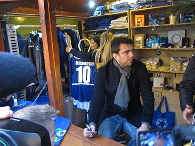 Zvjezdan Misimović, bosanskohercegovački nogometni reprezentativac i član ekipe koja će braniti boje Bosne i Hercegovine na svjetskom prvenstvu u Brazilu naredne godine, danas je posjetio kućicu Nogometnog saveza BiH na ”Sarajevo Holiday Marketu”.